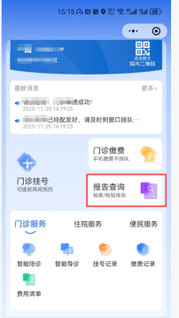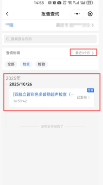 步骤:点击报告查询→选择查询时间→查看检查检验结果