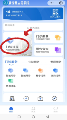 普安县人民医院”小程序线上挂号、缴费、报告查询操作流程