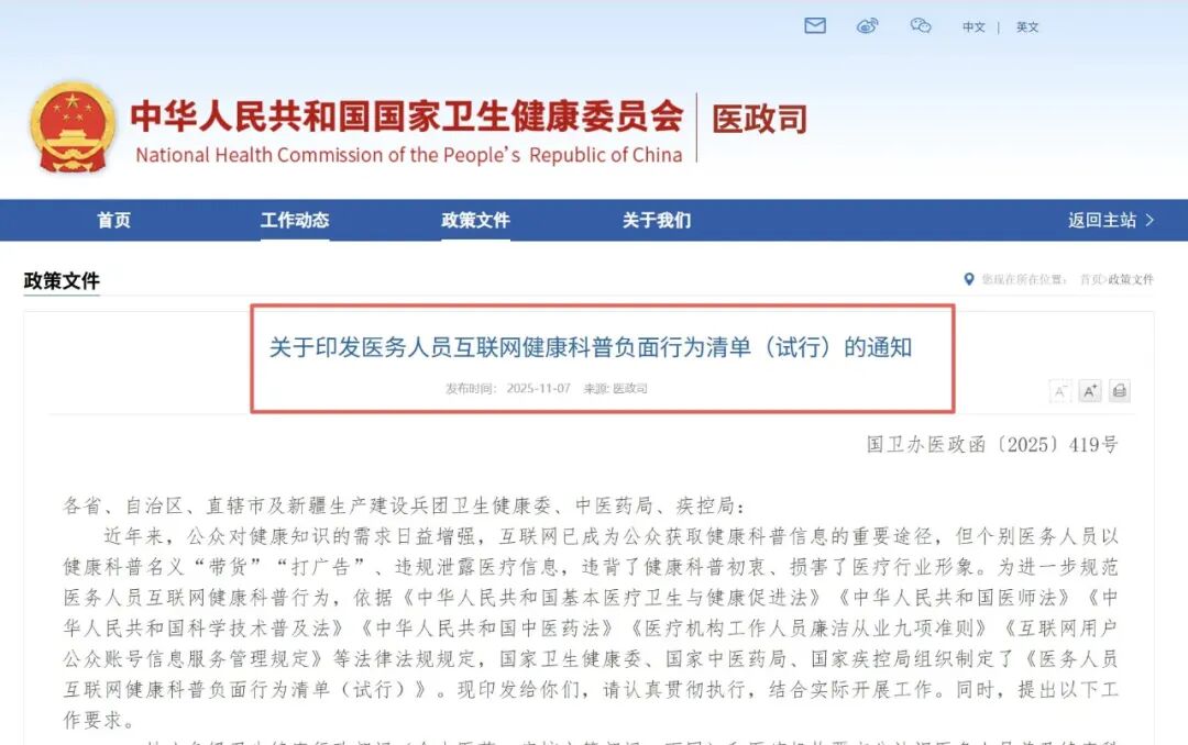 医务人员互联网健康科普负面行为清单(试行)