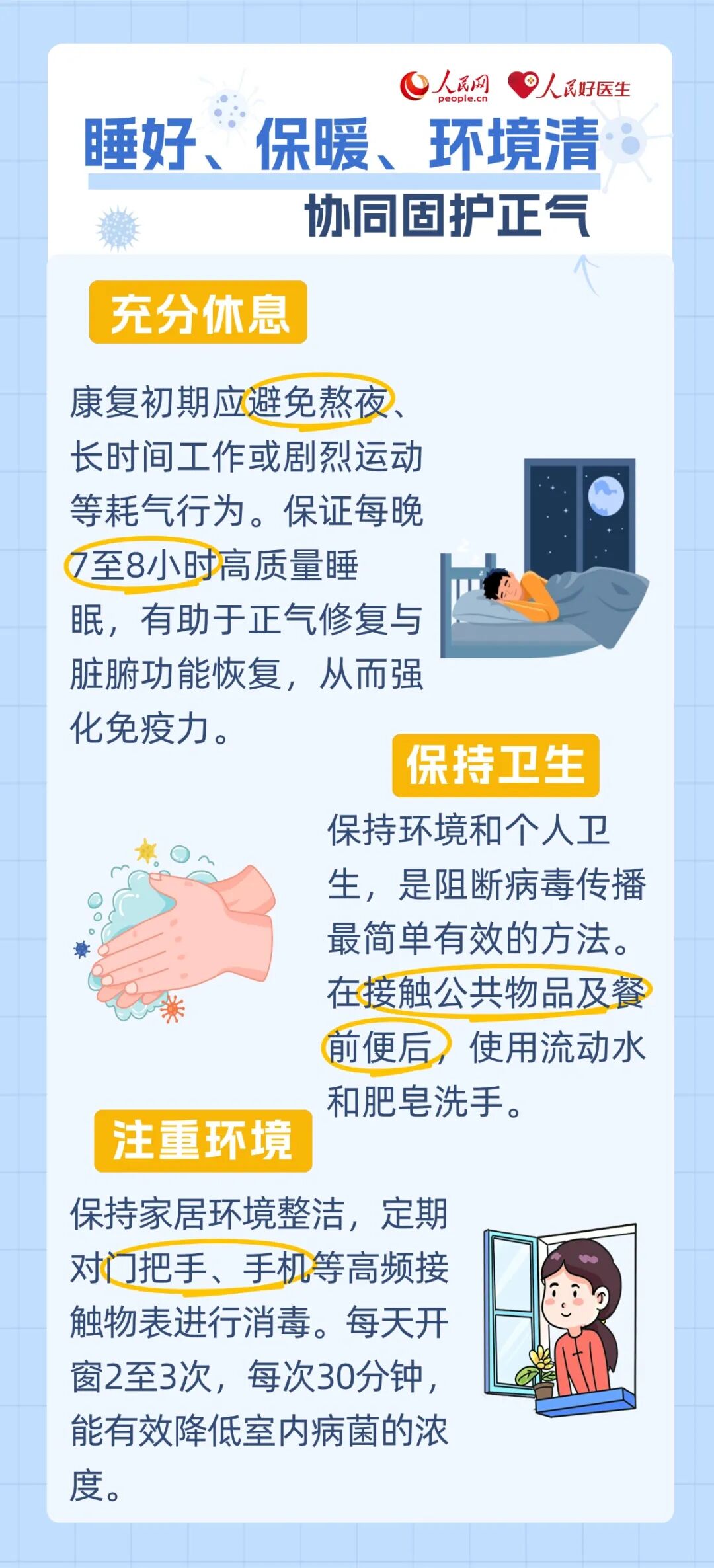 流感中招后,发烧、咳嗽的症状好了,不代表身体就完全恢复了。中医讲究“正气存内,邪不可干”,病后的康复期正是身体机能恢复、正气逐步充盈的关键阶段。通过系统地调养,并辅以适宜的食疗与外治法,能有效辅助人体正气,促进身心全面康复。