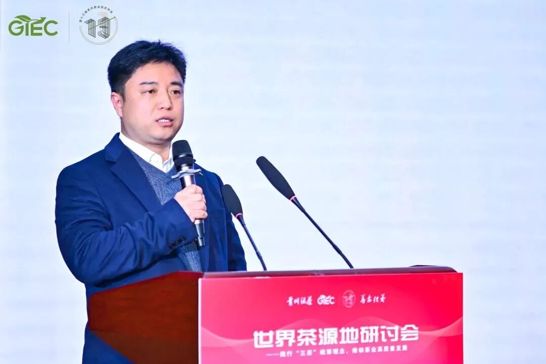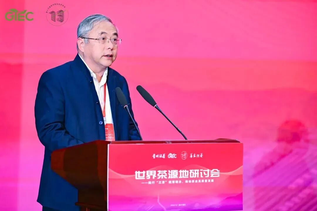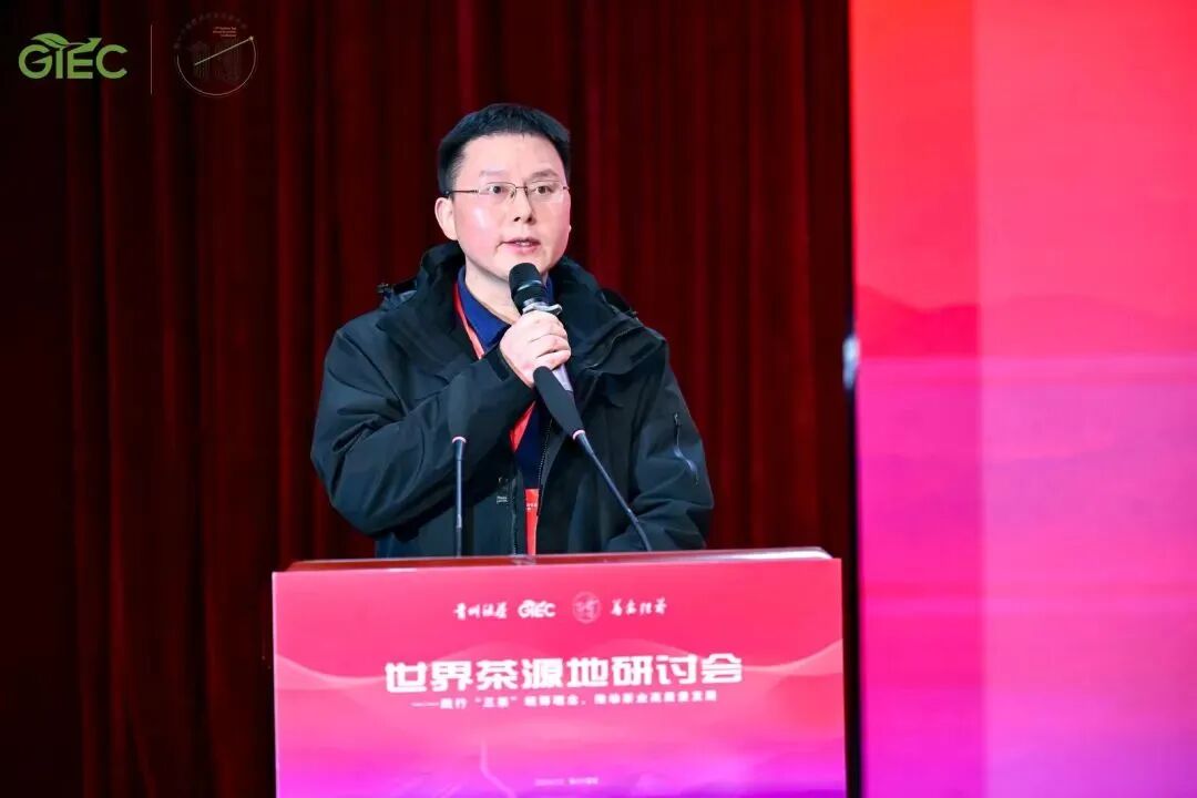 贵州省对外文化交流协会会长何京以《历史文化视野下的普安茶——浅谈普安茶与当地历史文化的相互加持》作主旨演讲