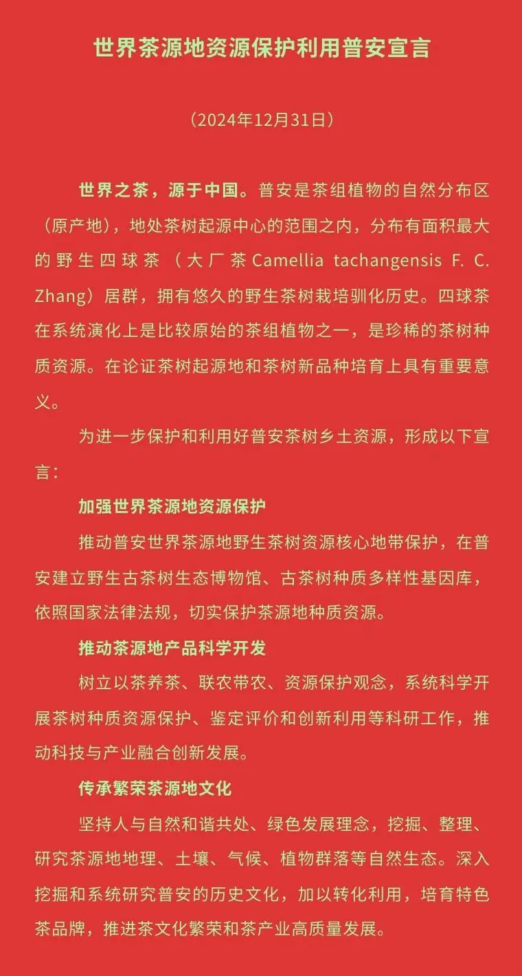 该宣言的发布,将进一步深化对世界茶源地资源保护的认识,通过抓好世界茶源地——普安核心地带的保护,引领全国野生茶树资源的有效保护和合理利用,不断推动茶文化繁荣和茶产业高质量发展。