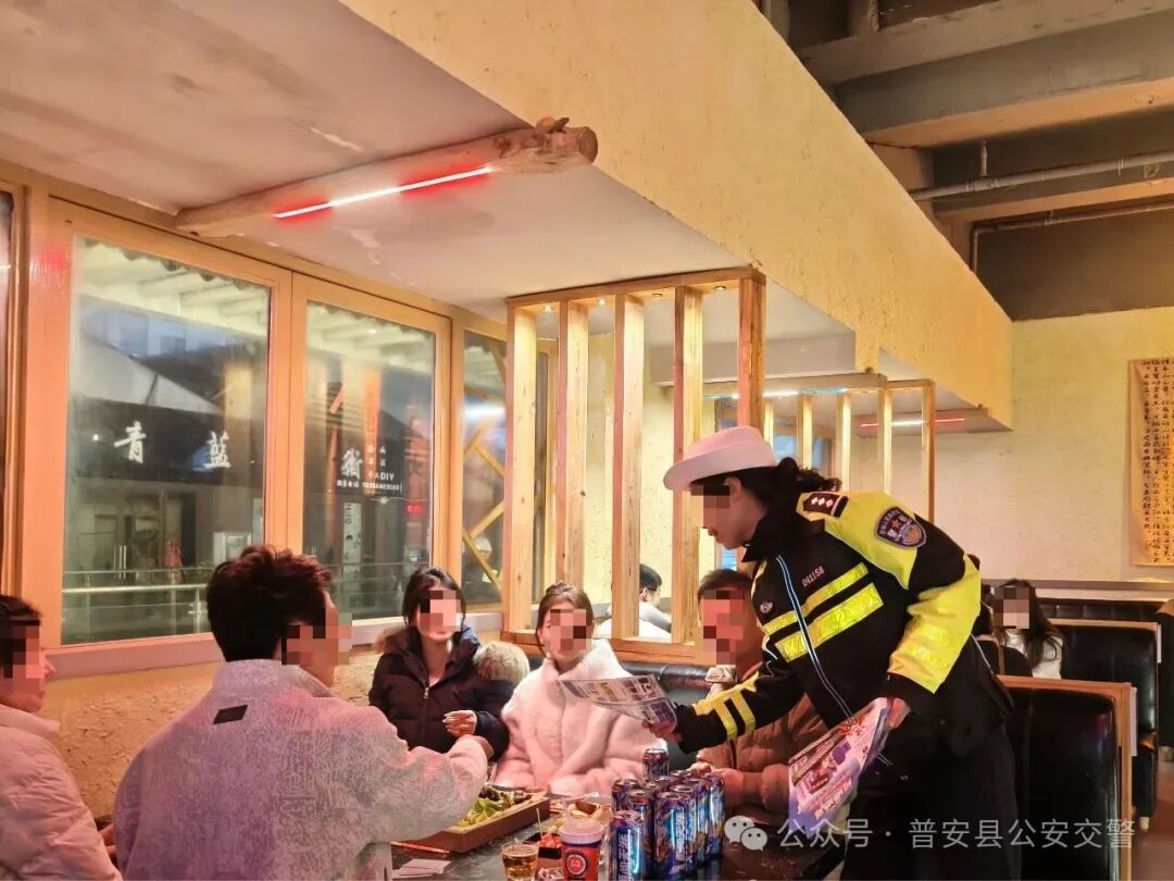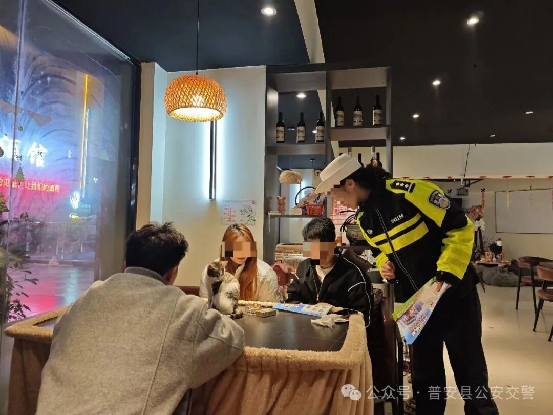 在严查严管的同时,宣传引导同步跟进。普安公安交管大队深入餐饮饭店、酒吧、夜市、广场等涉酒场所,通过发放宣传资料、现场讲解、以案释法、温馨提示等群众“看得见、容易懂、记得住”的形式,向广大群众普及酒驾醉驾的法律责任、危害后果以及出行安全注意事项,提醒驾驶员开车不喝酒、喝酒不开车,自觉抵制酒后驾驶、疲劳驾驶、超员超速等危险行为,争做文明交通的参与者和守护者。